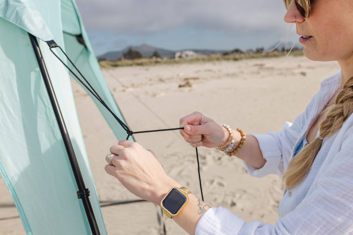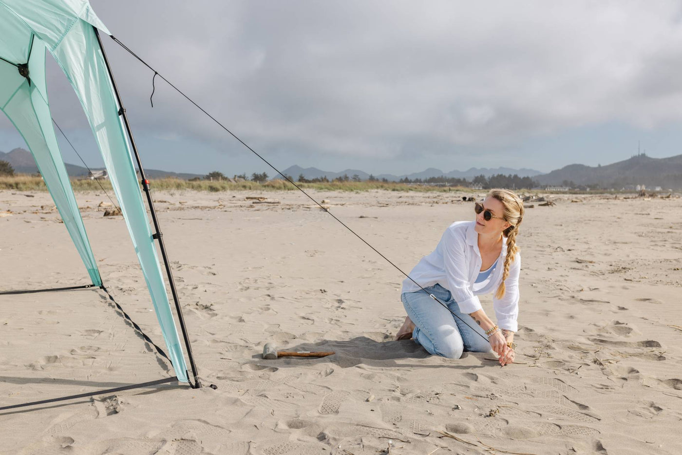 WINDPROOF & STABLE DESIGN: Stay secure in even breezy conditions! Our sun canopy comes equipped with ground stakes, a windproof rope, and sandbags. Providing you with a stable shelter that won’t blow away on windy days. Perfect for the beach, picnics, or outdoor events.